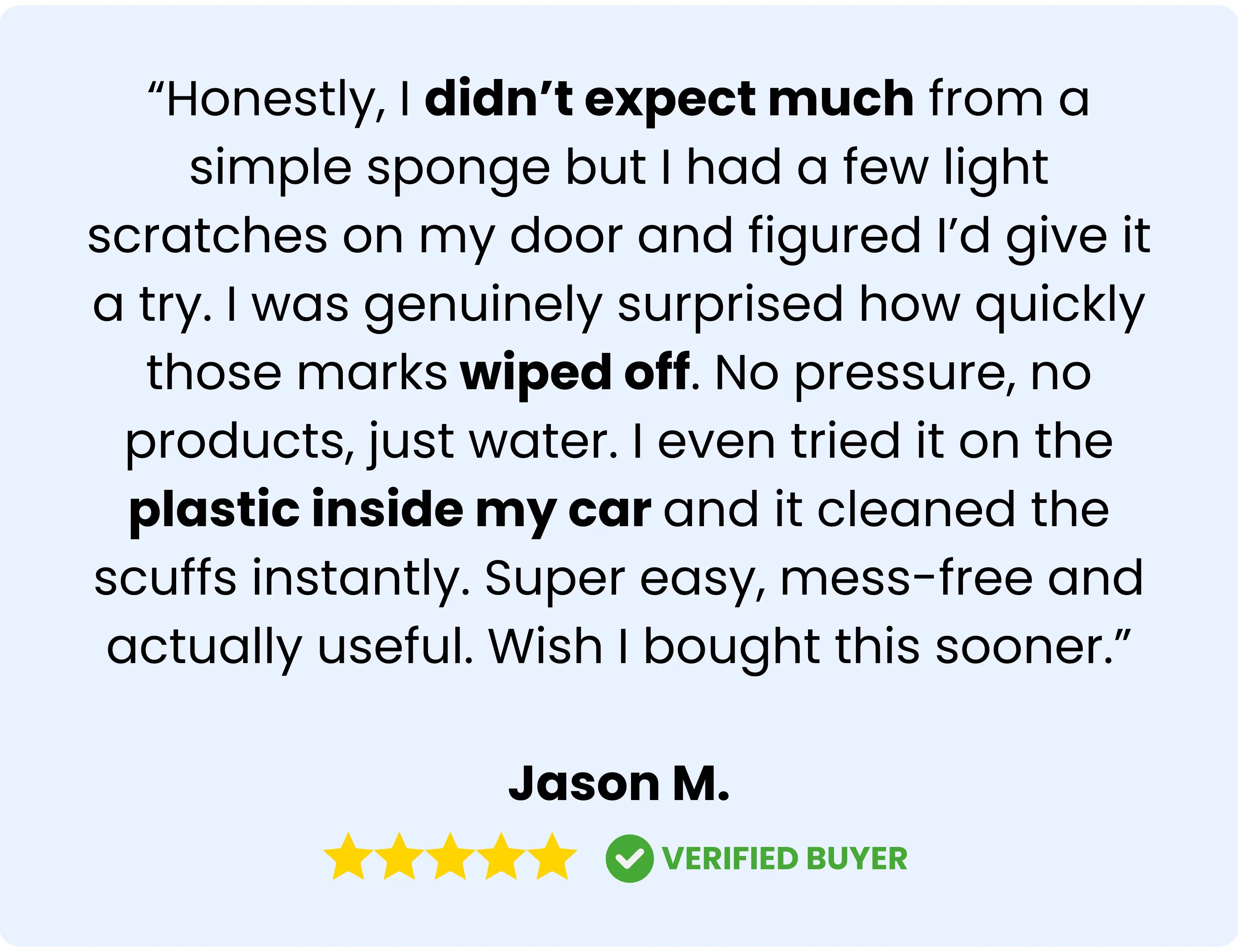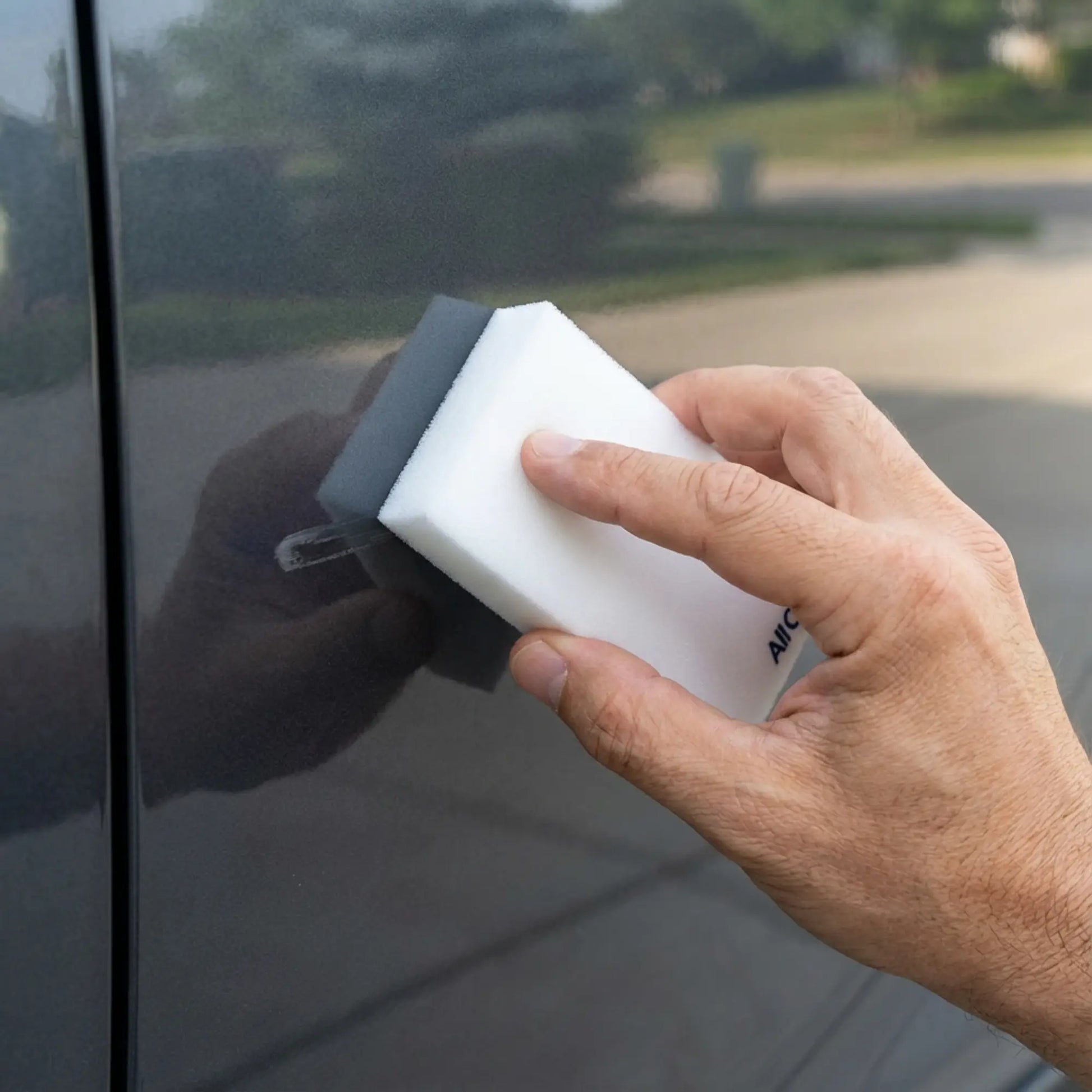 The All Cars Magic Sponge wipes away light scratches, scuff marks, shoe marks, plastic streaks, and dirt in seconds without chemicals, without effort, and without any risk.